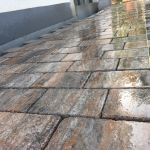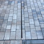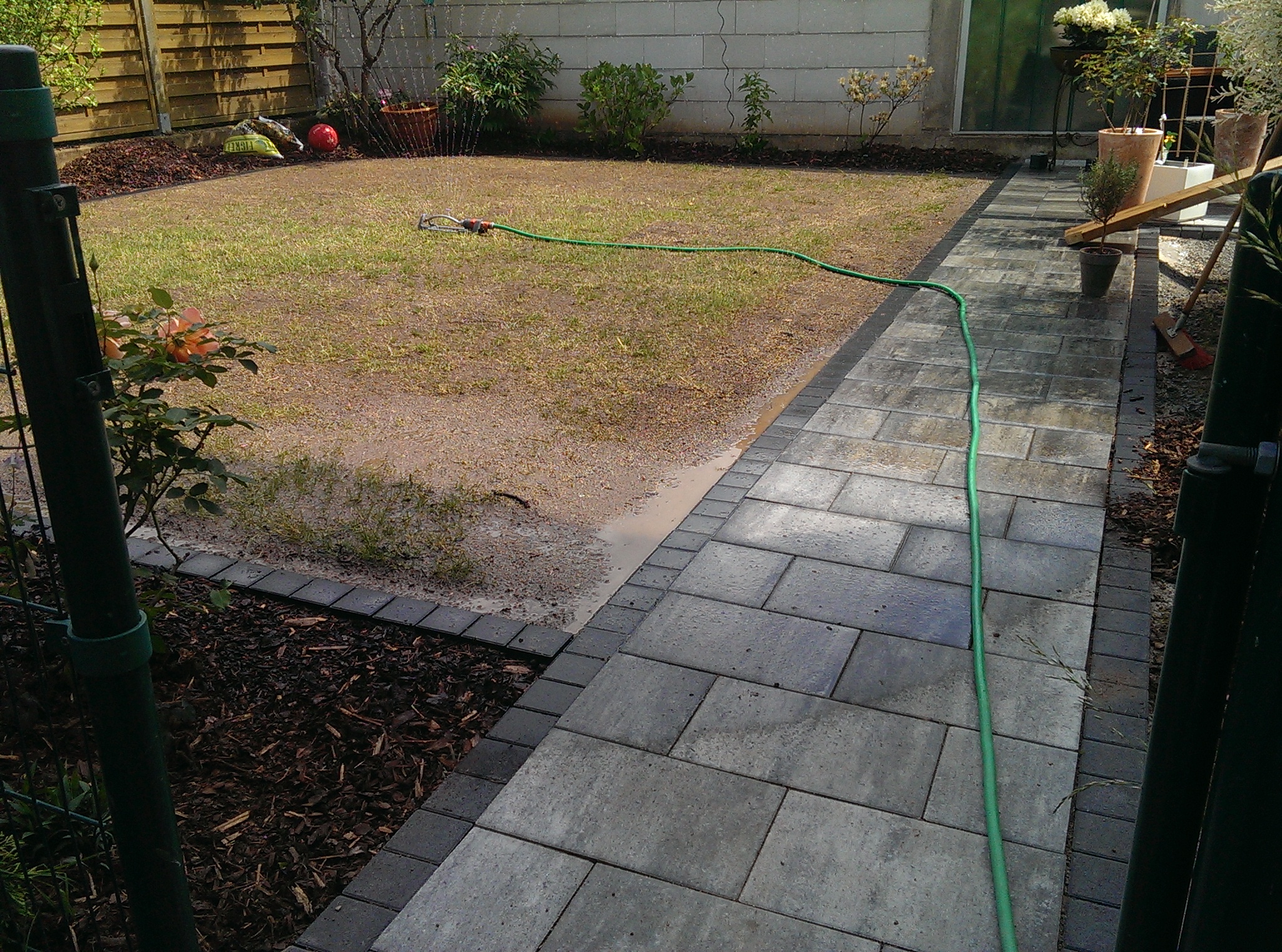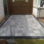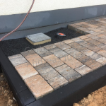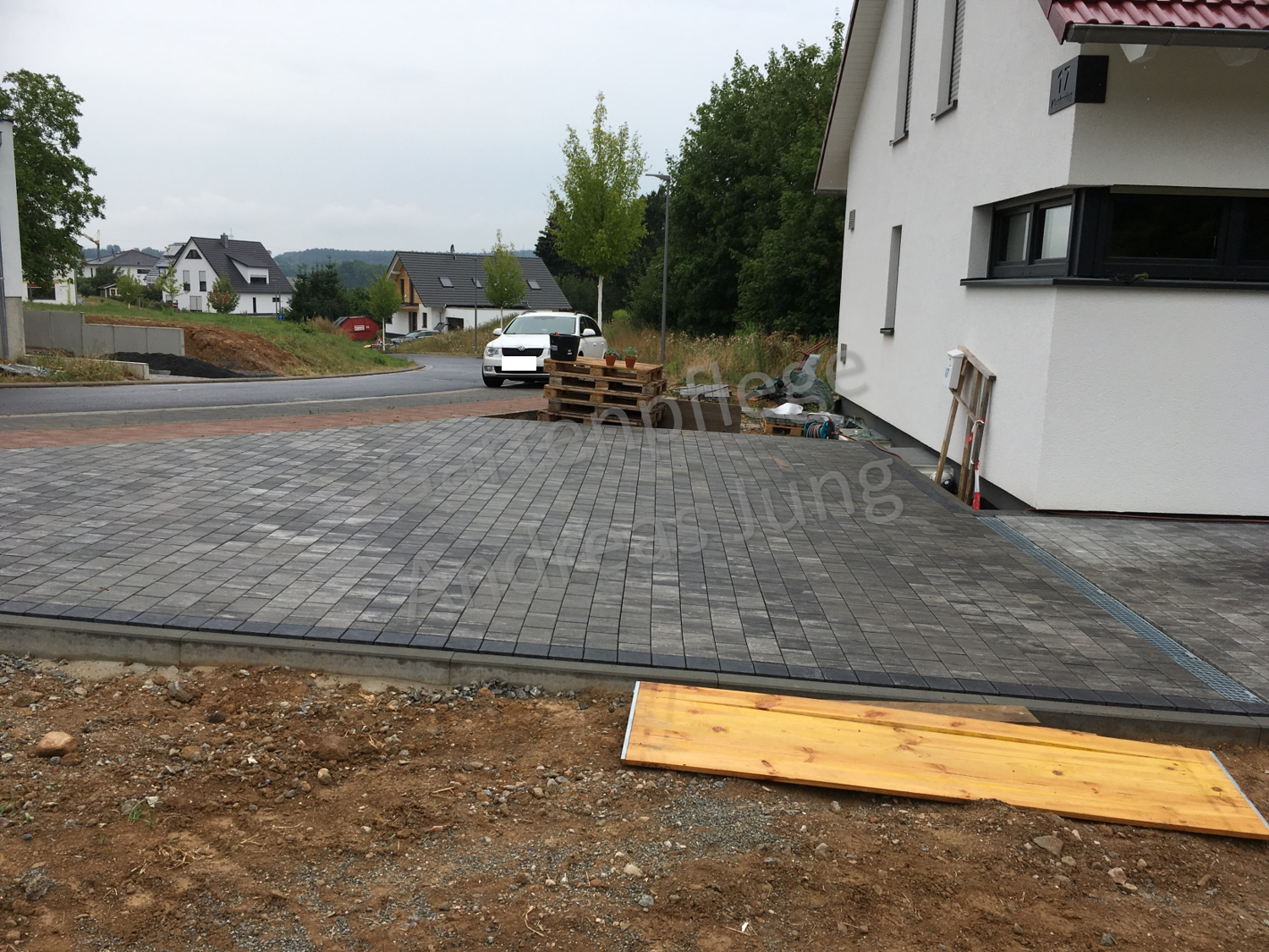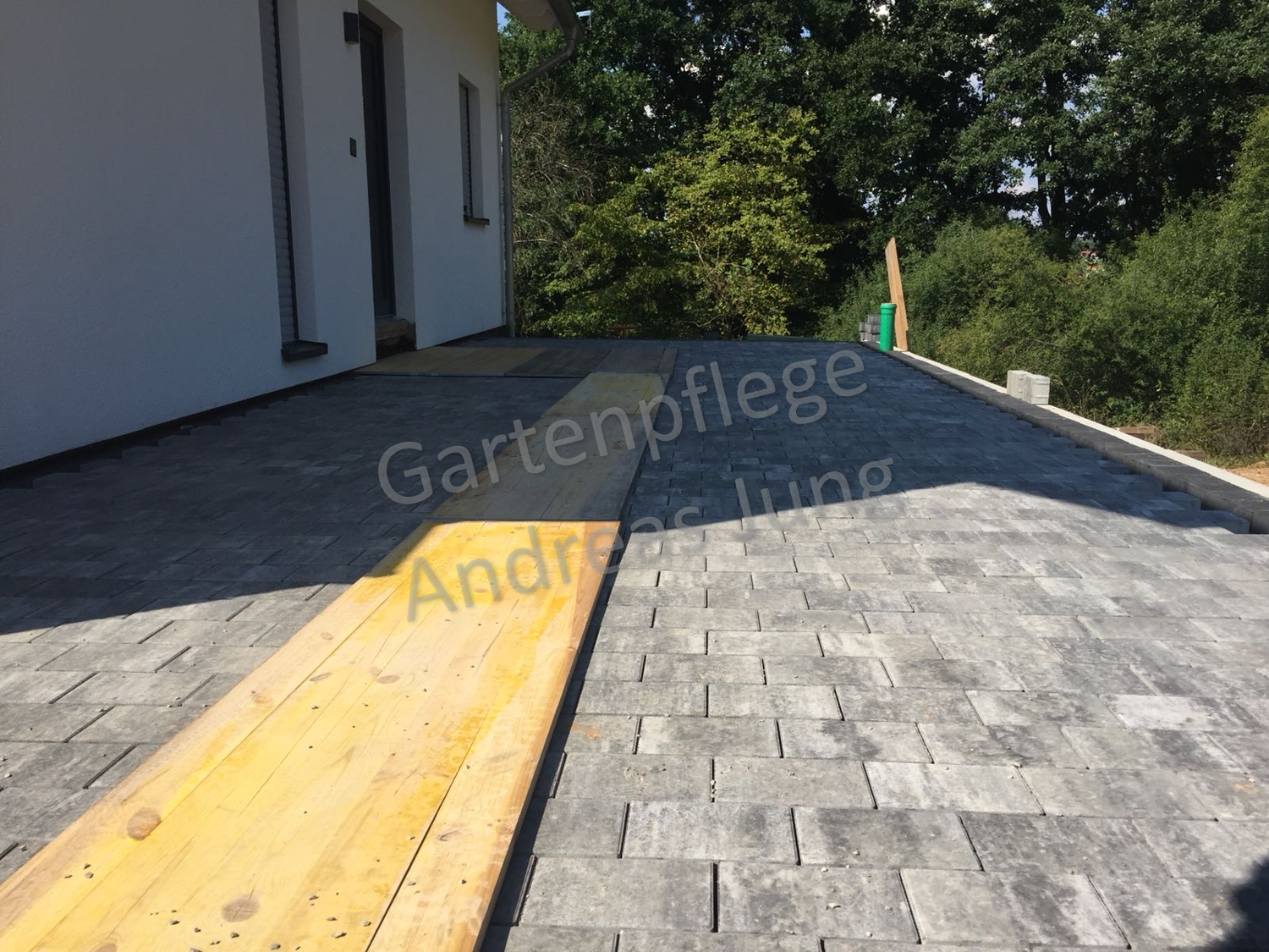 - Neues Pflaster in Muschelkalkoptik im Rastermaß verlegt.