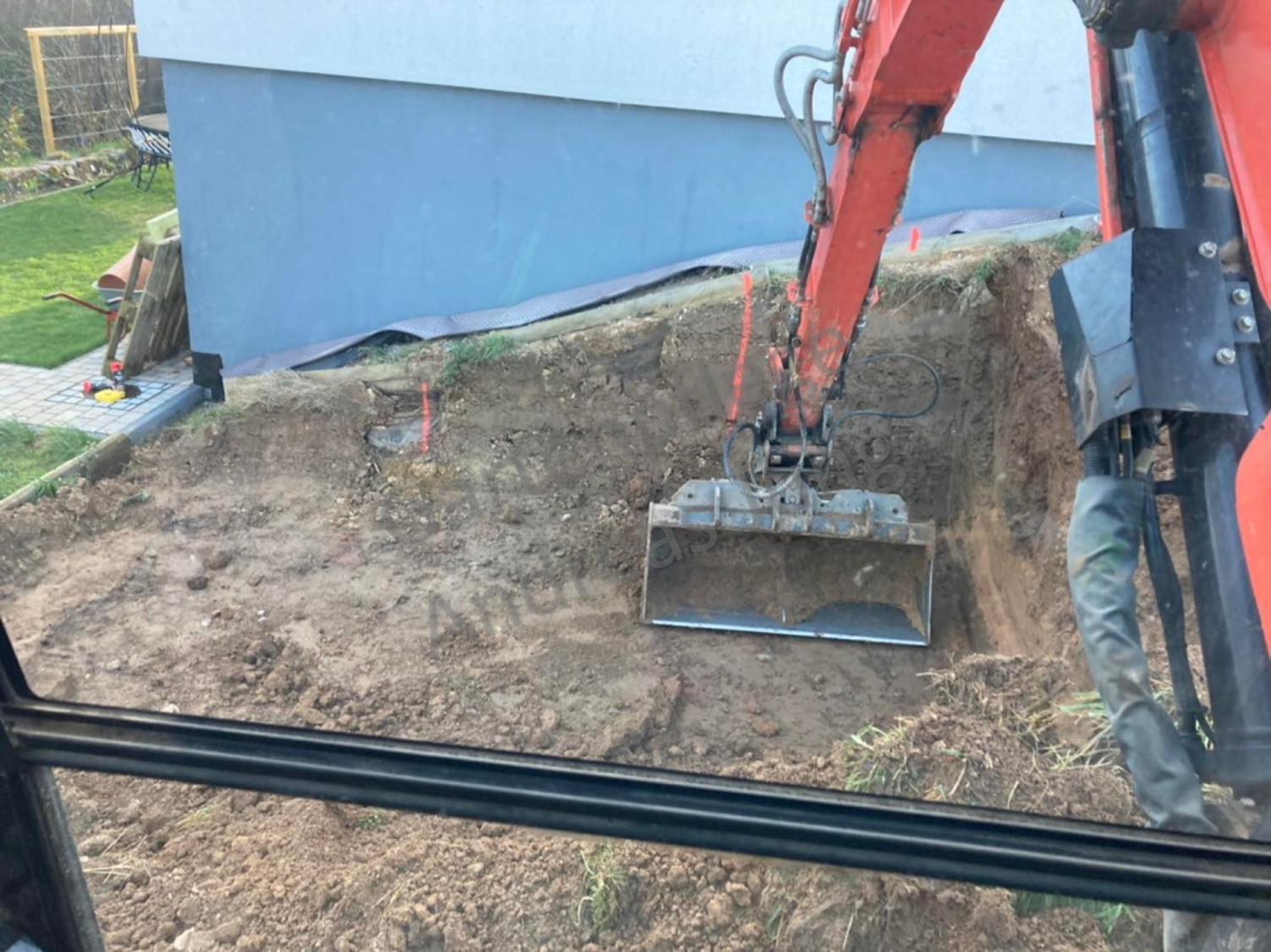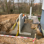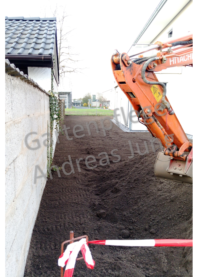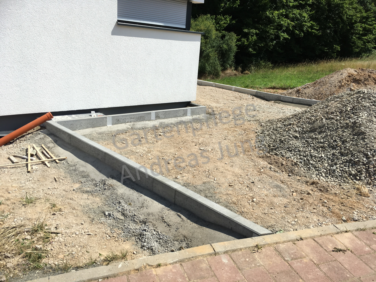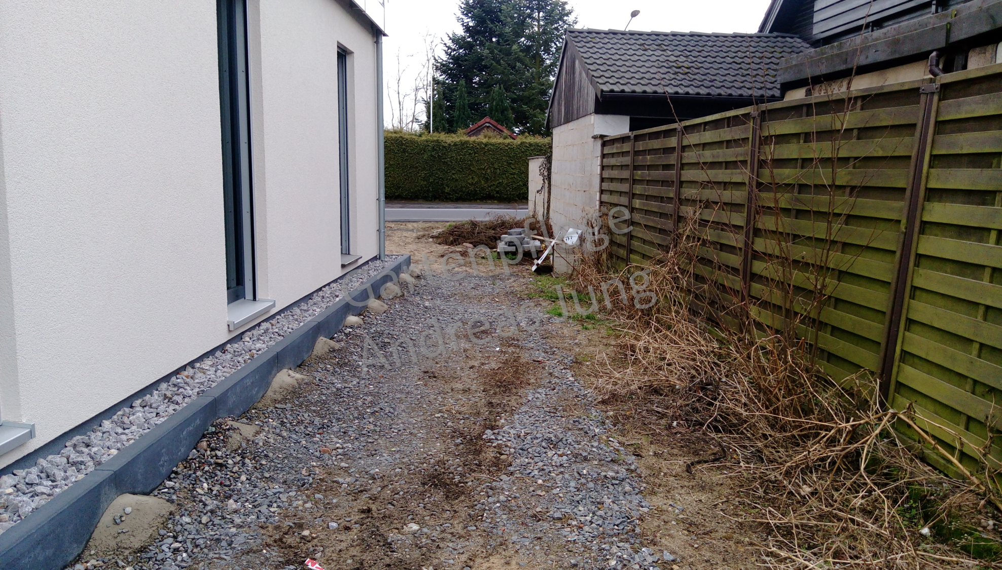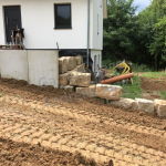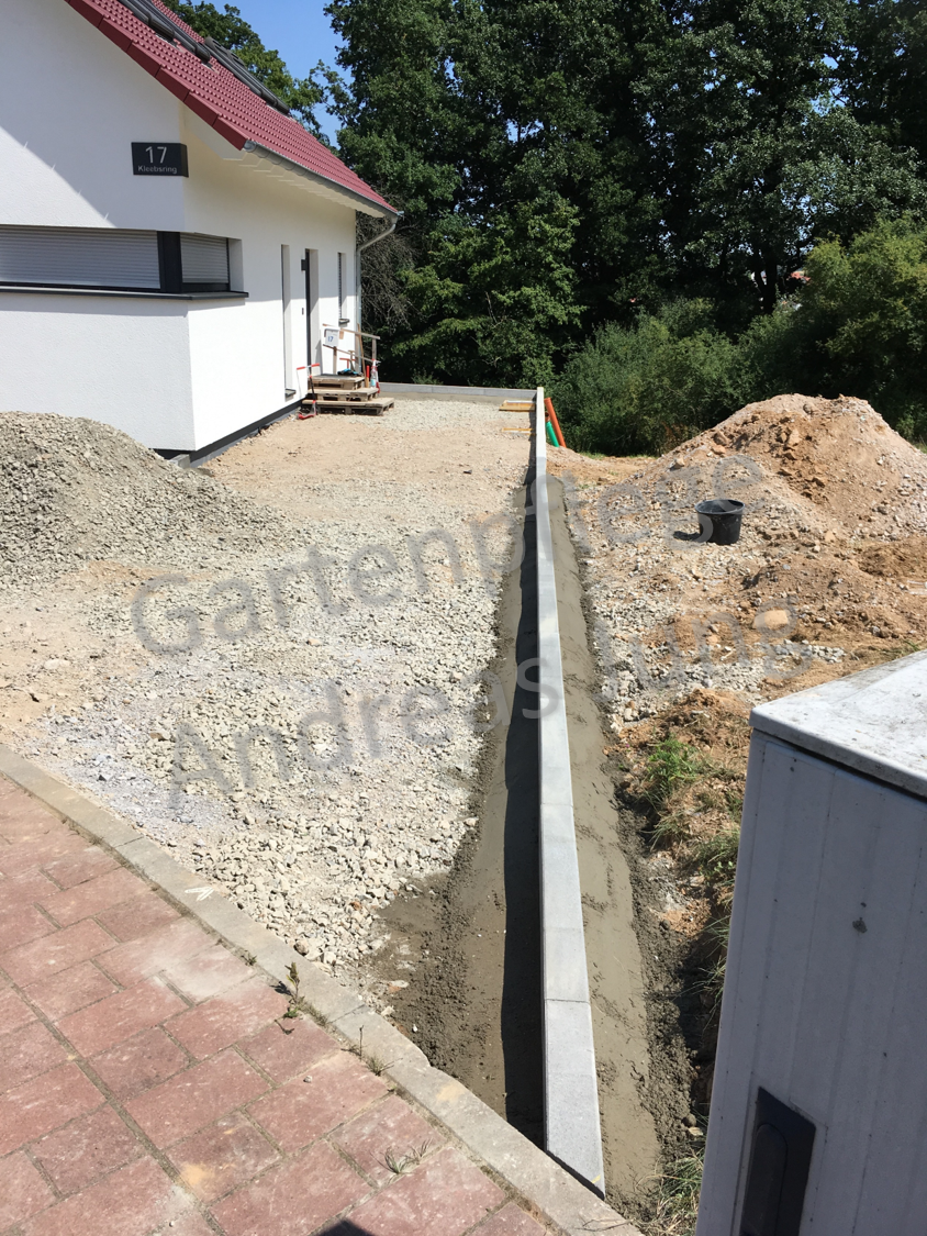 - Wir konnten die Grundstückseinfassung sowie den Bau des Traufstreifens abschließen.