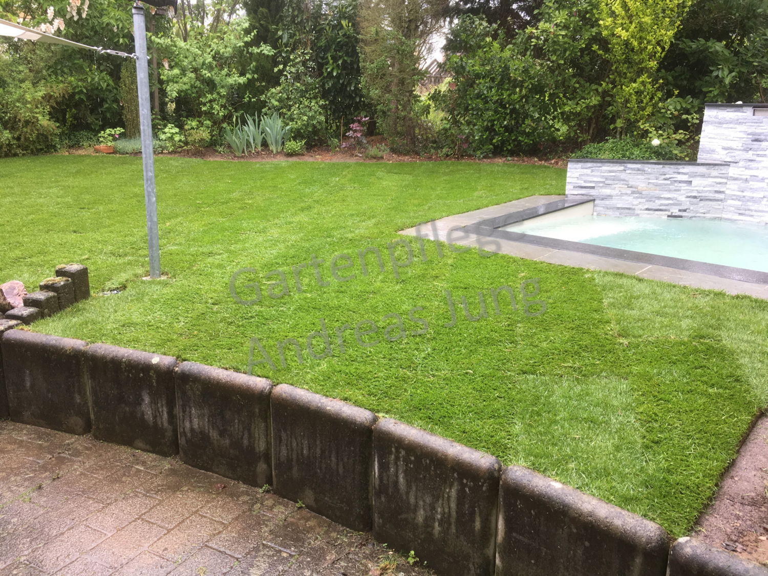Erneuerung Rasenfläche mit Fertigrasen im Jahr 2019