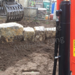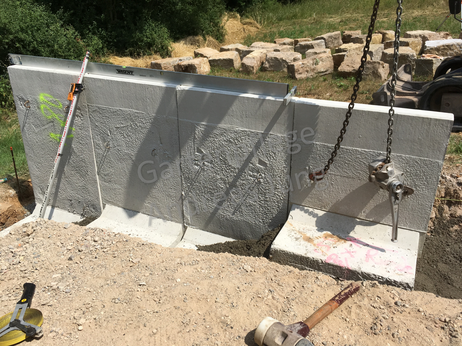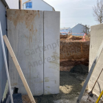- Wir haben Mauerscheiben bis zu einer Bauhöhe von 2.55m gesetzt und ordentlich Boden, Schotter und Beton bewegt.