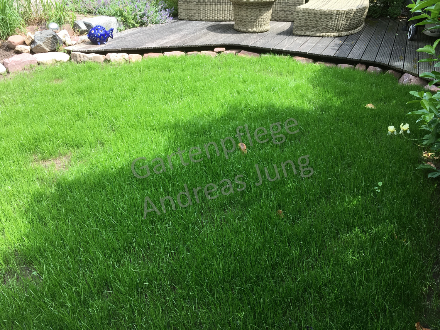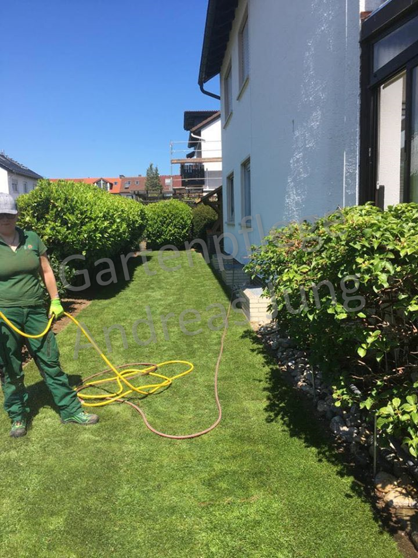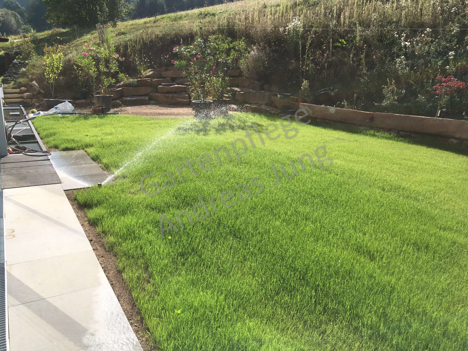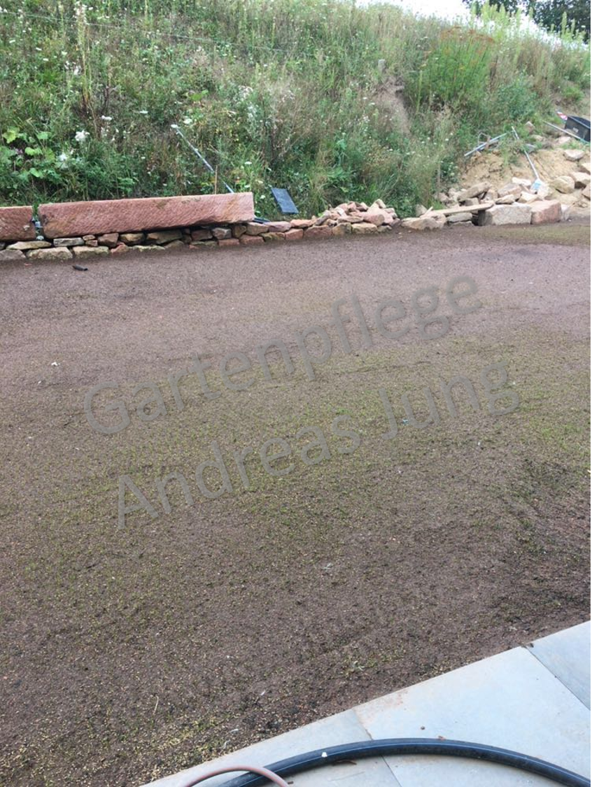 - Düngen, Einsähen und Anwalzen der Rasenfläche