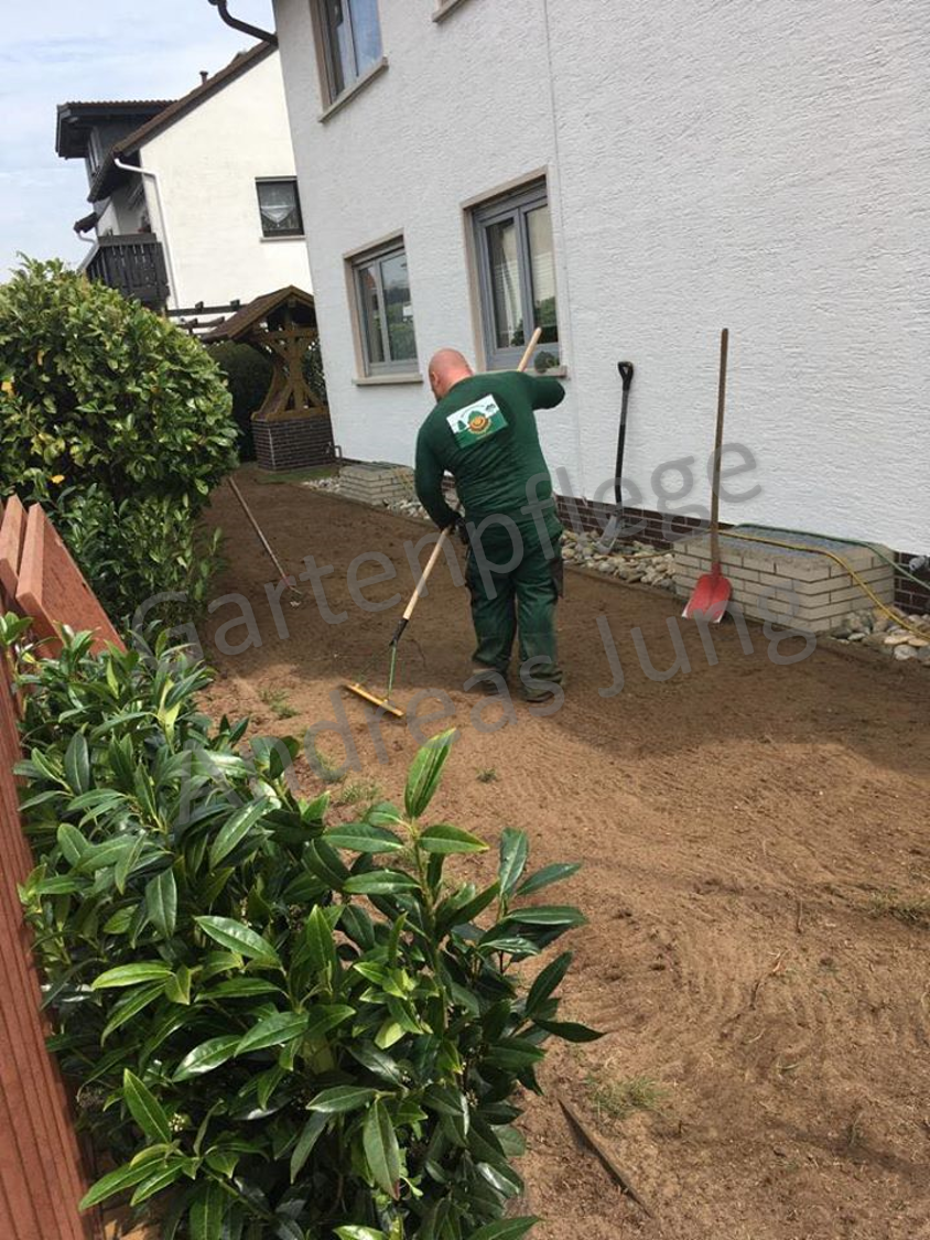 - Fertigrasenverlegung (Düngen, Legen, Anwalzen und Wässern)