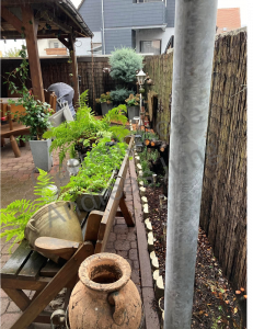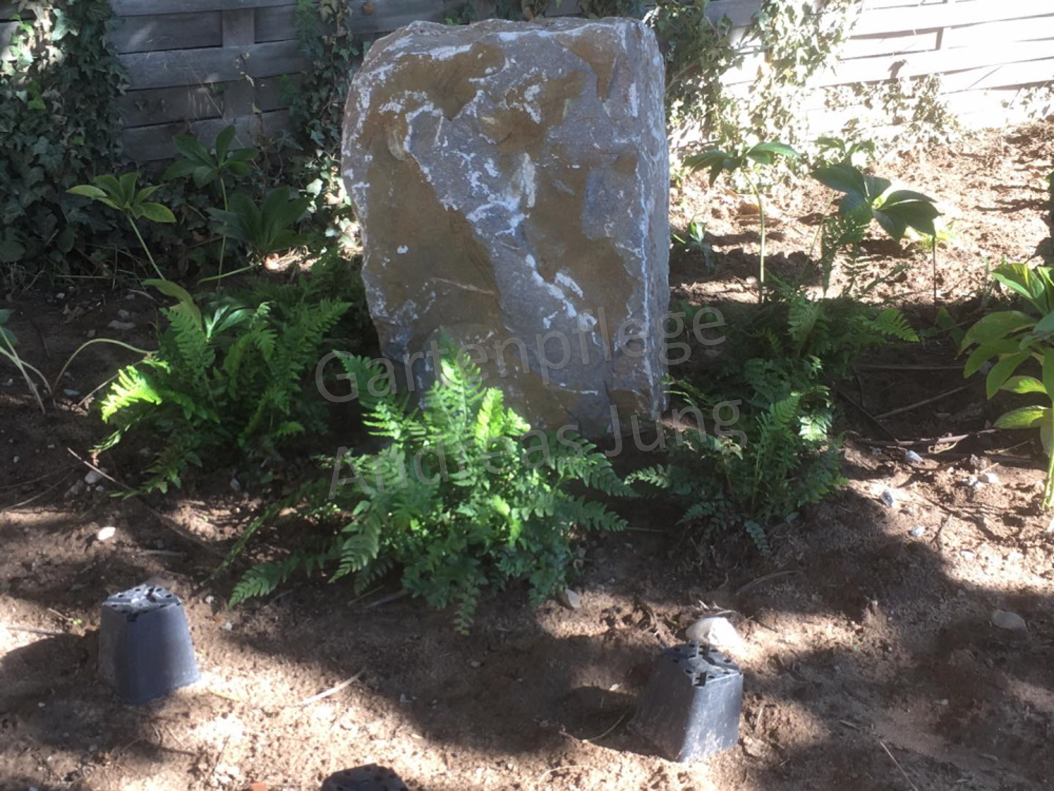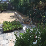 Richtig stolz sind wir, dass die Kamelie der Kunden die lange Bauzeit im Kübel überstanden hat. Nun kann sie nahe ihrem ursprünglichen Pflanzort wieder anwachsen.