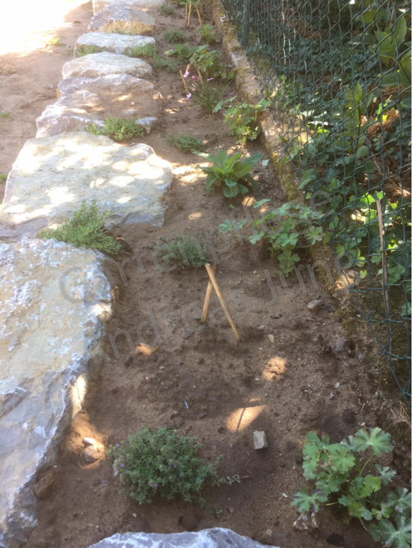 Und damit es mit dem Unkraut nicht so doll wird, wurde alles mit kleinen Walderdbeeren unterpflanzt. Somit haben die kleinen beim Spielen auch immer was zum naschen.