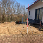 - Zum Abschluss des Tages musste noch das Aufmaß für die Fassadensockelrinne, die in den Bereich vor der Hauswand und Terrassentüren kommt, erstellt werden.