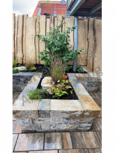 - Einfassung vorhandener Beete mit einem Einzeiler aus Betonpflaster