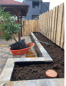 - Heckenpflanzung inkl. Einbau eines Bewässerungsschlauchs