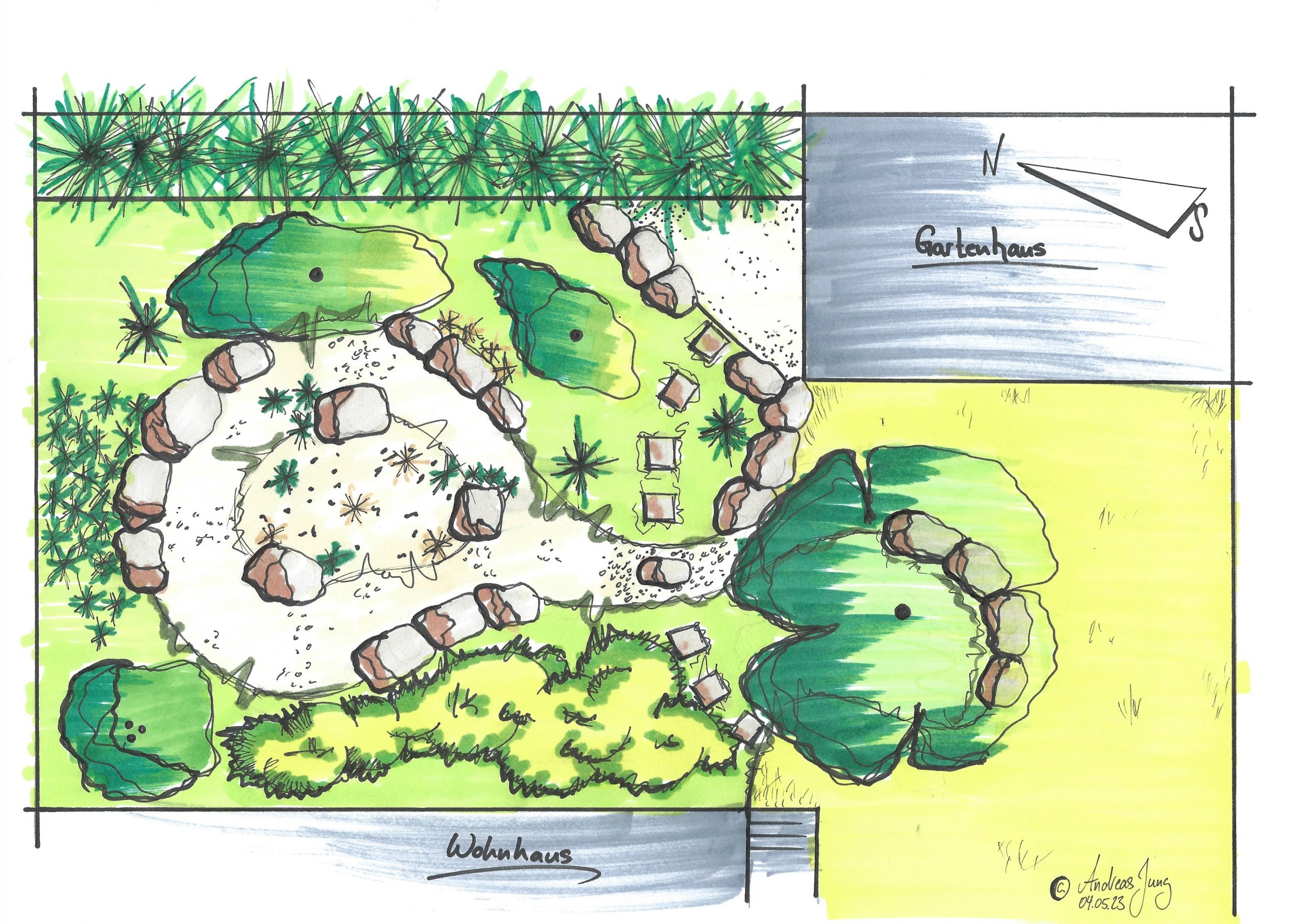 Entwurfsplanung Umgestaltung Hausgarten im Jahr 2020